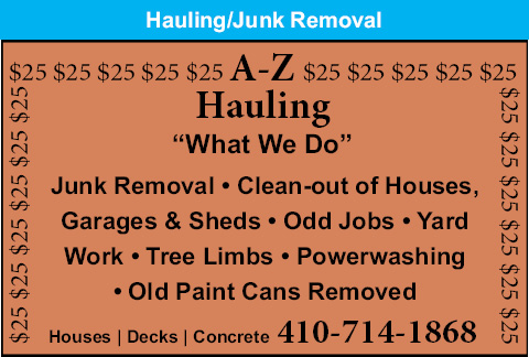 Ads for A-Z Hauling in The Chesapeake Bay Area